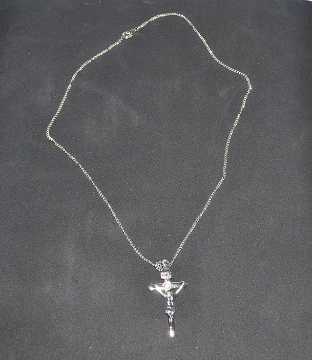 Náhrdelník vyrobený z retiazky striebornej farby s ukrižovaným Ježišom na krížiku. Pekný darček pre každého, kto miluje Boha.