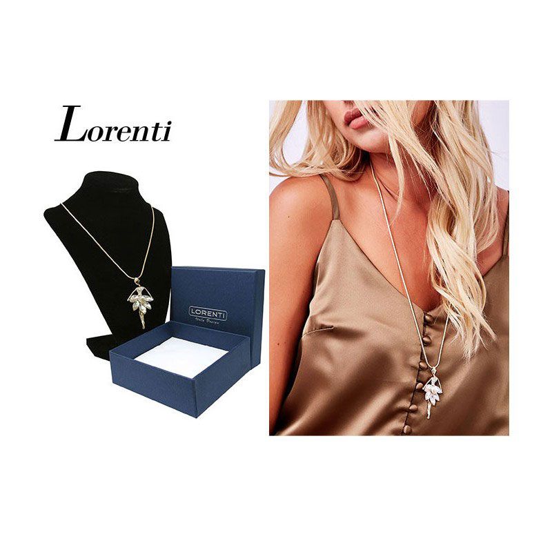 Luxusný dámsky náhrdelník Lorenti s motívom "Tanečnica" je vyrobený zo zliatiny viacerých kovov - zinku, bronzu a železa. Je zdobený štrasom a brúsenými syntetickými diamantami vyrobenými z lešteného akrylového skla. Dominantný prívesok je zavesený na retiazke. Tento náhrdelník patrí do kategórie dlhých náhrdelníkov.