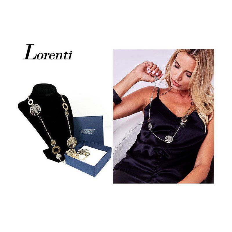 Luxusný dámsky náhrdelník Lorenti s motívom "Strom šťastia" je vyrobený zo zliatiny viacerých kovov - zinku, bronzu a železa. Ozdoby sú pospájané retiazkou a krúžkami. Tento náhrdelník patrí do kategórie dlhých náhrdelníkov.