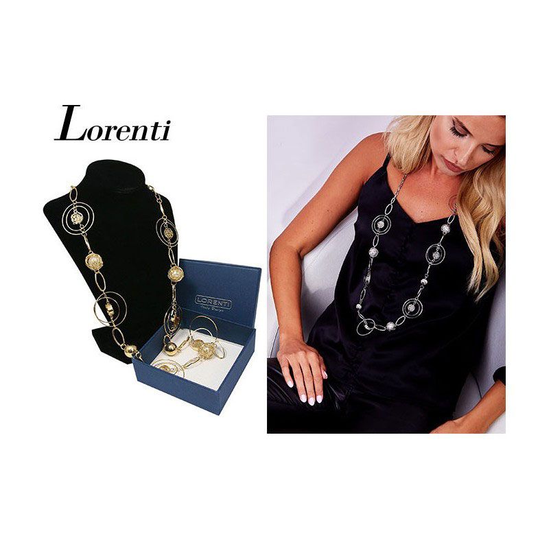 Luxusný dámsky náhrdelník Lorenti s motívom "Rings" je vyrobený zo zliatiny viacerých kovov - zinku, bronzu a železa. Je zdobený štrasom a brúsenými syntetickými diamantami vyrobenými z lešteného akrylového skla. Ozdoby sú pospájané retiazkou a krúžkami. Tento náhrdelník patrí do kategórie dlhých náhrdelníkov.