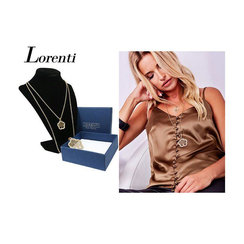 Luxusný dámsky náhrdelník Lorenti s motívom "Tree in flower" je vyrobený zo zliatiny viacerých kovov - zinku, bronzu a železa. Je zdobený štrasom a brúsenými syntetickými diamantami vyrobenými z lešteného akrylového skla. Prívesky sú na dvoch retiazkach. Tento náhrdelník patrí do kategórie dlhých náhrdelníkov.