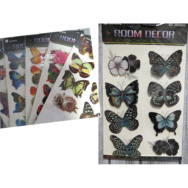 Dekoračné nálepky v tvare motýľa sú umiestnené na blistri o rozmere 58x35 cm. Na blistri je nalepených cca 40 kusov metalických nálepiek.