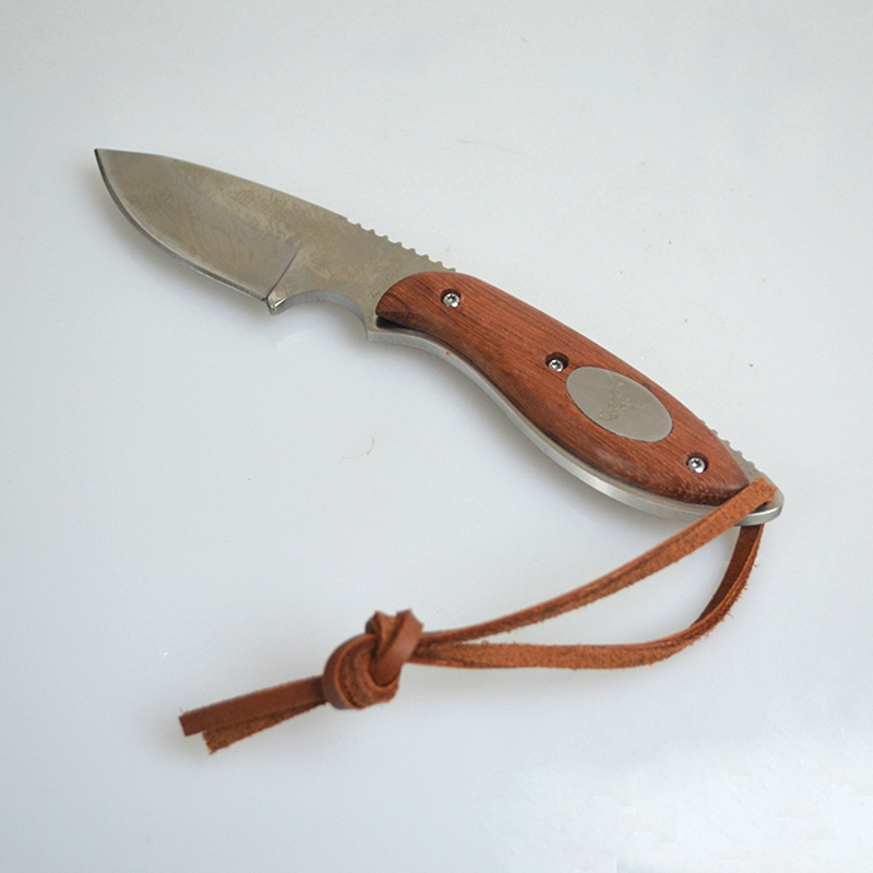 Črienky rúčky sú vyrobené z ľahkého a pevného dreva. V strede črienky je štítok s gravírovaným jeleňom. Vďaka dôslednej ergonómii nôž drží pevne v ruke aj za daždivého počasia. Na spodnej strane sa nachádz kožený remienok, ktorým si môžete nôž pripevniť k batohu alebo k časti oblečenia. K nožu dostávate aj kvalitné púzdro z pravej kože, ktoré si môžete upevniť k opasku.