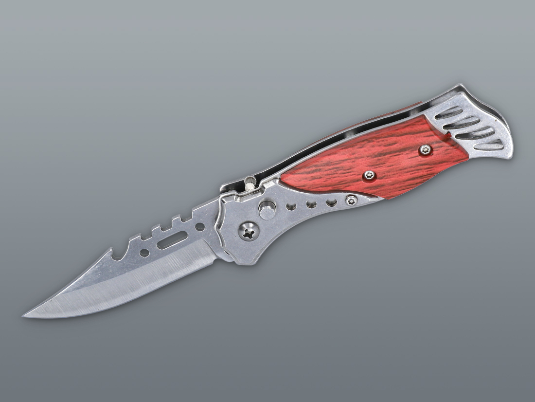 Nôž s drevenou rukoväťou a kvalitnou ostrou čepeľou z nerezovej ocele 440. Vyskakovacia čepeľ zboku pomocou tlačidla. Bezpečnostná poistka na rukoväti. Možnosť gravírovania mena, venovania atď. do čepele, rúčky alebo darčekovej krabičky (za príplatok). Vďaka gravírovaniu sa tento nôž stáva dokonalým osobným darčekom. Vynikajúca kvalita za super cenu. Vďaka svojím malým rozmerom je ideálny hlavne pre hubárov, turistov a rybárov, ale aj pre poľovníkov či na bežné nosenie.