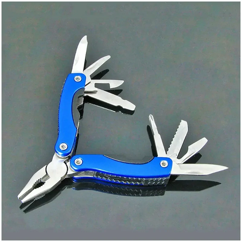 Viacfunkčné skladacie kliešte - praktický pomocník každého majstra. Vyrobené sú z kvalitnej nerezovej ocele. Rukoväť majú obloženú črienkami z pevného odolného plastu.