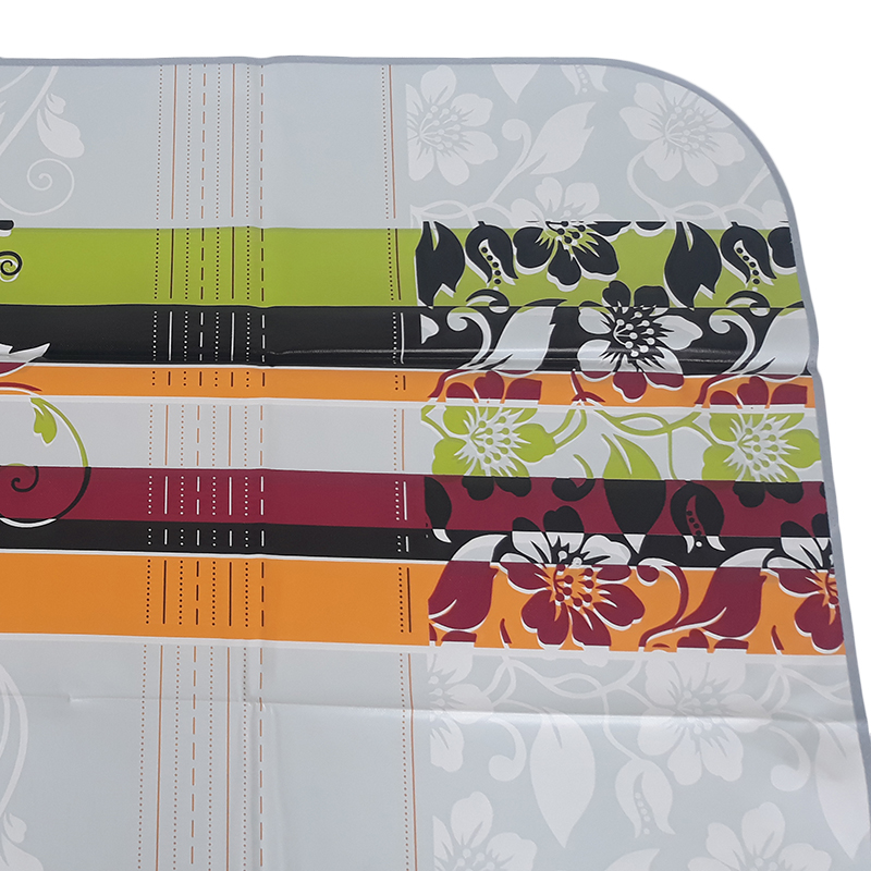 Exkluzívny obrus na stôl z nemeckej kolekcie "Style my home" je nielen veľmi praktický, ale je vhodný aj ako krásna dekorácia interiéru. Obrus je vyrobený z tkaniny fleece a na povrchu je pogumovaný, aby sa dal jednoducho umyť vlhkou handričkou. Teda žiadne pranie navyše, jednoducho ho pretriete a opäť žiari čistotou. Je odolný voči škvrnám a je jednoduchý na údržbu. Obrus je pruhovaný v štyroch farbách so vzorom kvetín v čiernej farbe. Po obvode je obšitý lemovkou.