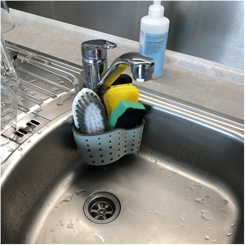 ZABEZPEČÍ PORIADOK V KÚPEĽNI A KUCHYNI - organizér na špongie je dokonalým spôsobom, ako udržiavať poriadok v kuchyni alebo kúpelni. Vďaka nemu budete mať vždy poruke potrebné doplnky, ako napríklad špongie, kefky a žinky. Môže byť použitý ako v kúpeľni, tak v kuchyni.