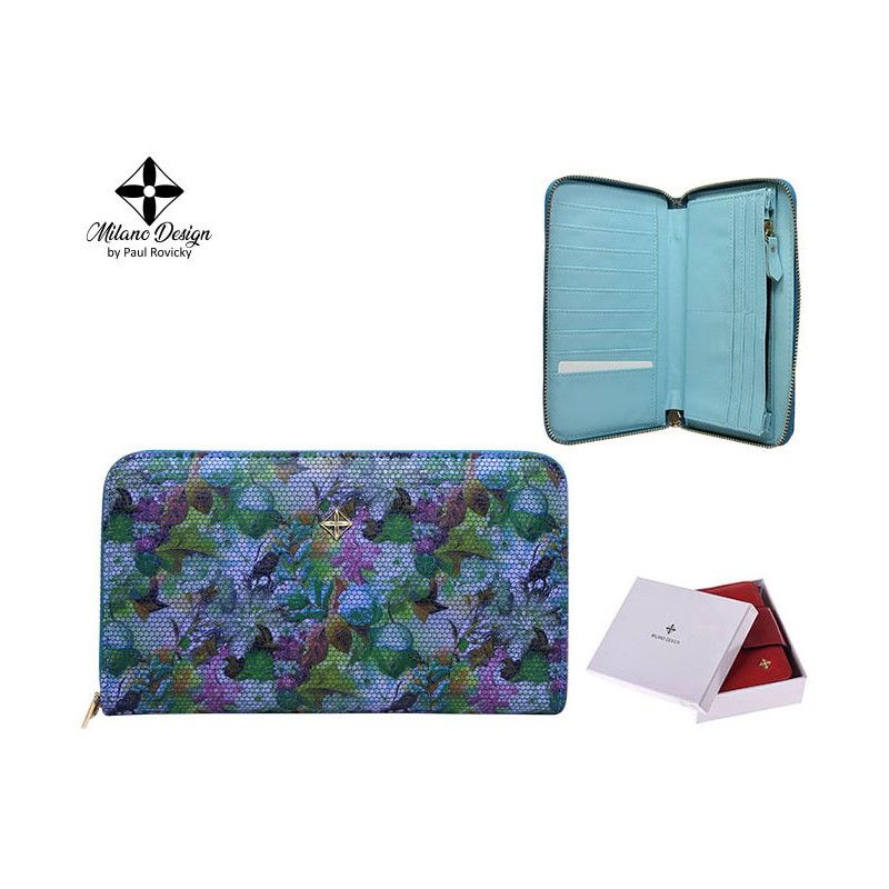 Peňaženka z kolekcie Rovicky s originálnym a málo vídaným kvetinovým vzorom. Je vyrobená v milánskom dizajne. Peňaženka má bohatý úložný priestor. Má tri priehradky na bankovky, vrecko na mince, ktoré sa zatvára zipsom. Má až päťnásť !!! priehradok na karty alebo dokumenty. Celá sa zatvára zipsom. Peňaženka je väčších rozmerov a môžete ju nosiť aj ako malú príručnú kabelku.