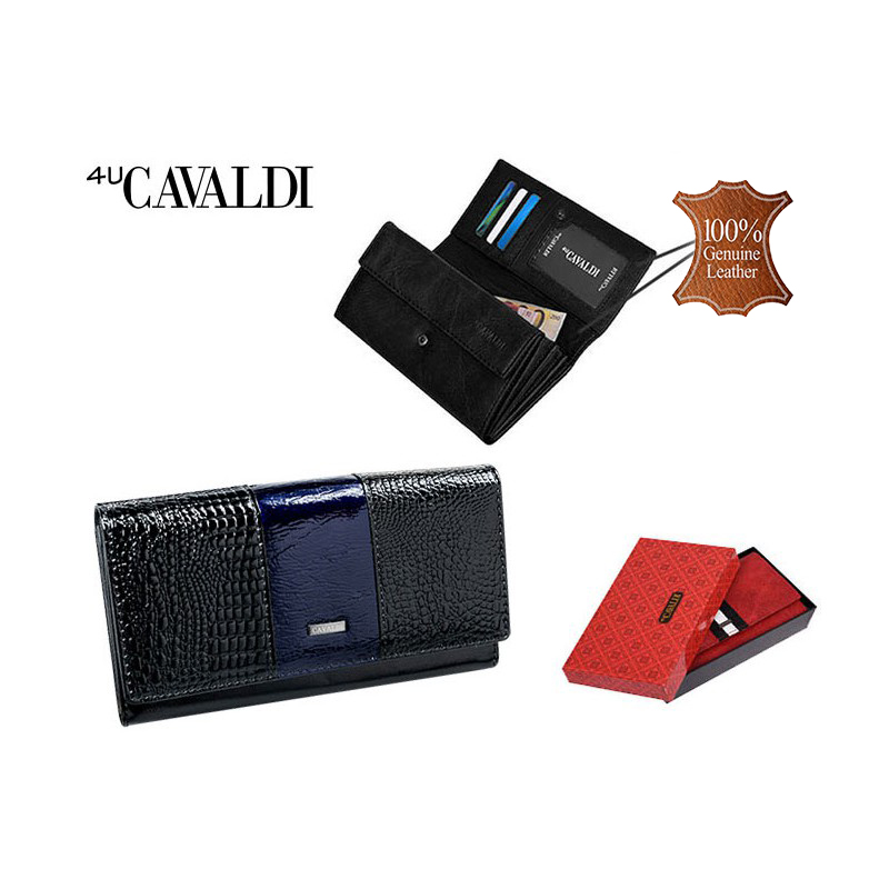 Neobyčajne štýlová a výnimočne elegantná kožená peňaženka z kolekcie renomovanej talianskej značky Cavaldi. Je strednej veľkosti, ale zmestí sa do nej všetko potrebné, čo potrebujete mať stále poruke. Má veľmi dobre zorganizovaný systém priehradok, vreciek a odkladacích priečinkov. Je vyrobená z pravej kože a je polakovaná, čo jej dodáva neobyčajný lesk. Do kože je vtlačený exotický vzor. Je veľmi elegantná a neunikne žiadnej pozornosti.