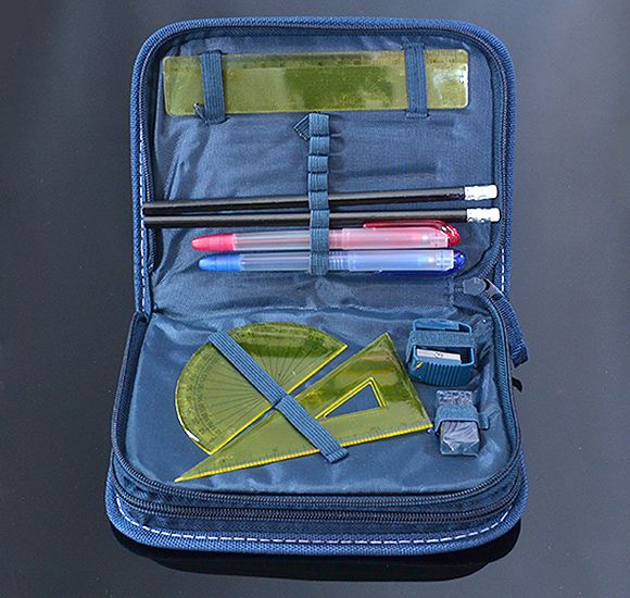 V skvelej výpredajovej cene Vám ponúkame 2-radový perečník s príslušenstvom. V obidvoch komorách perečníka sa nachádza pravítko, pravítko - trojuholník, uhlomer, dvojstrúhadlo, guma na ceruzky, dve ceruzky, 12 kusov farbičiek, modré a červené pero. Perečník sa zatvára zipsom. Rozmer perečníka je 20,5 x 14 x 4,8 cm. ideálny darček pre deti, školákov a predškolákov.