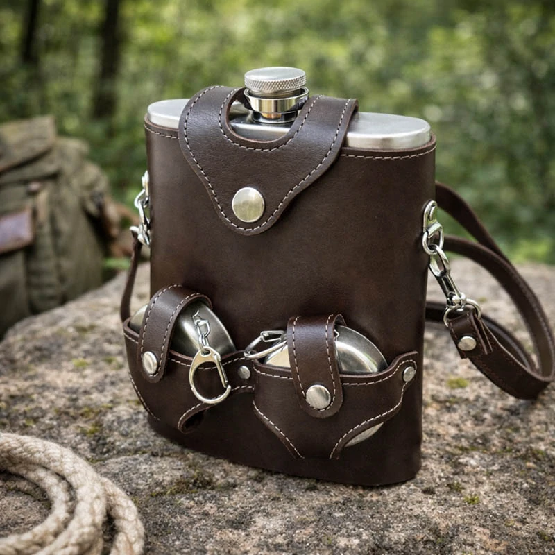 Nerezová ploskačka 450ml s pohárikmi v koženom púzdreSkladom26,90 €/ ks21,87 € bez DPH