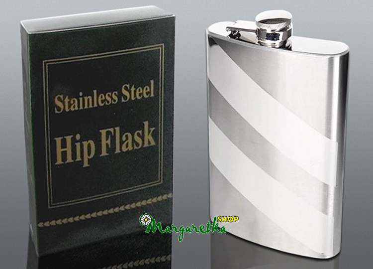 Ploskačka z nerezovej ocele so šikmými pruhmi s obsahom 8Oz.-240 ml. Na predaj v krabičke. Cena s DPH. Pekný darček pre turistu, rybára, poľovníka atď.