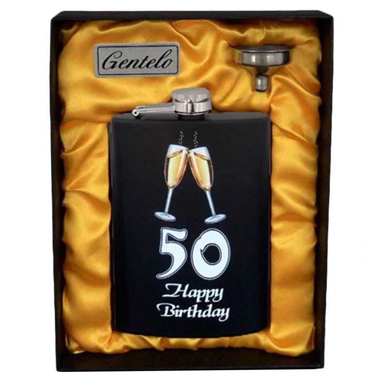 Objednajte si túto elegantnú ploskačku Gentelo s lievikom ešte dnes a potešte jubilanta darom, ktorý spája štýl, praktickosť a symboliku výnimočného momentu.