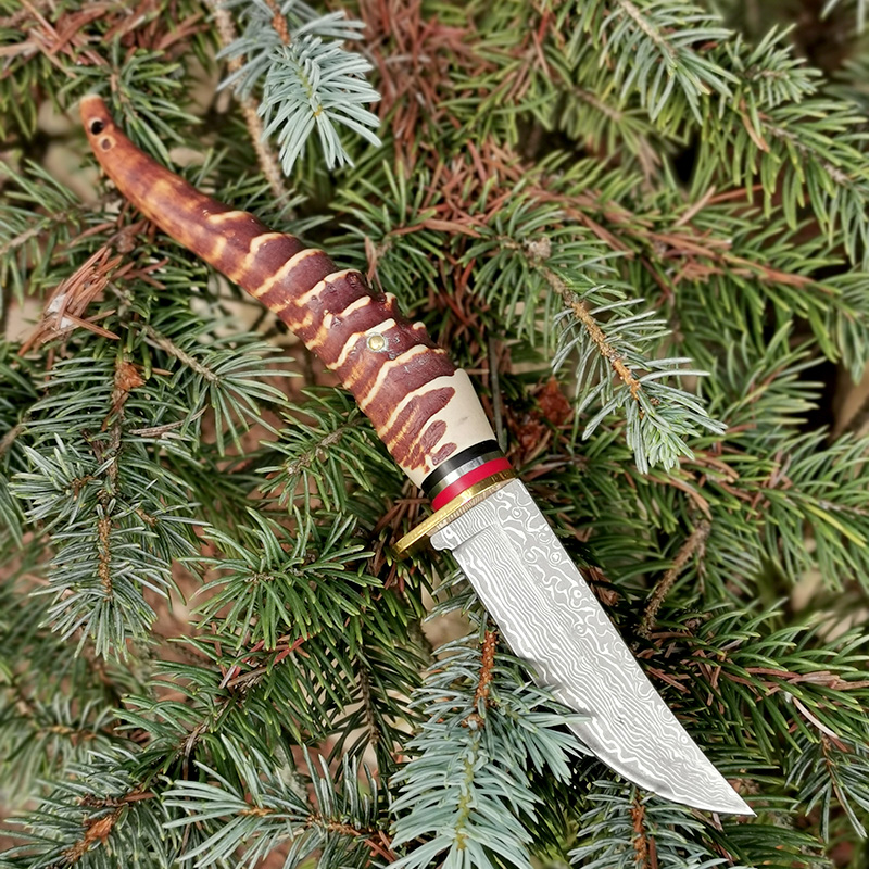 Tento poľovnícky nôž má dekorovanú čepeľ v štýle damaškového noža. Je to vynikajúci pracovný nôž. Rúčka je vyrobená z kvalitného a ľahkého exotického dreva.