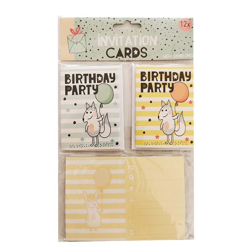 Nádherné originálne pozvánky na oslavu s obálkami. Pekný motív je vhodný pre menšie aj staršie deti. Na pozvánke máte určené miesto na napísanie dátumu, času, miesta, textu na pozvanie aj kontaktu.  Rozmer balenia 24x15cm.  celý popis