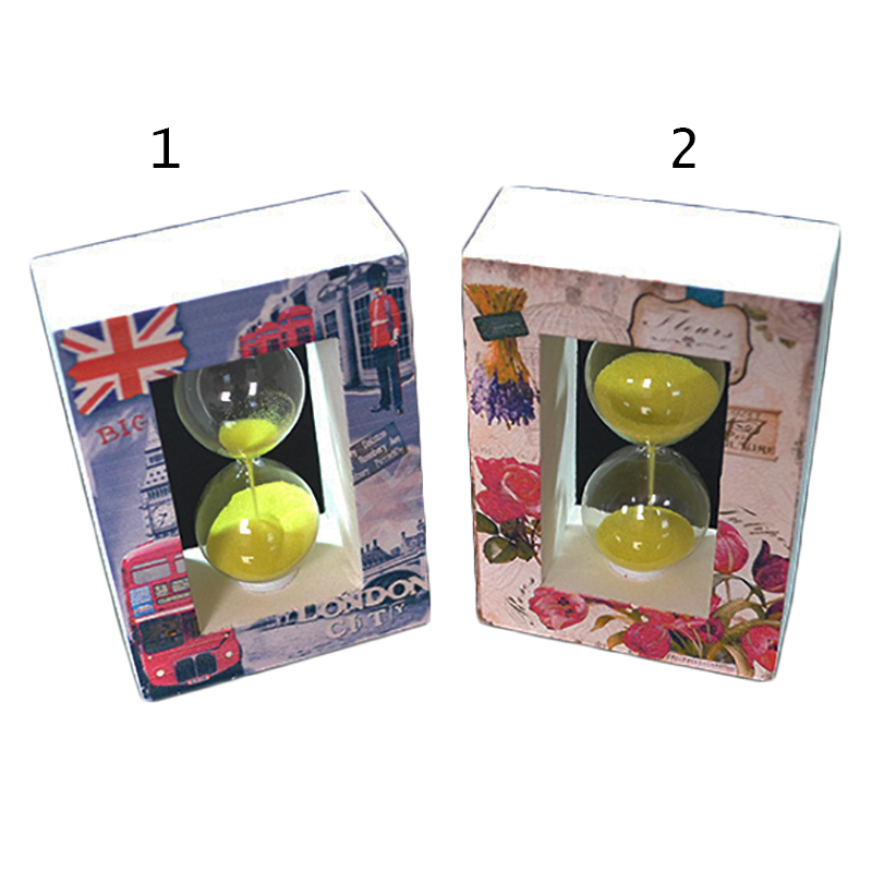 Dekoračné presýpacie hodiny so žltým pieskom o rozmere 8 x 6,5 x 3 cm. Na výber z dvoch vzorov - Paríž a Kvety. Na predaj v krabičke. Cena s DPH.
