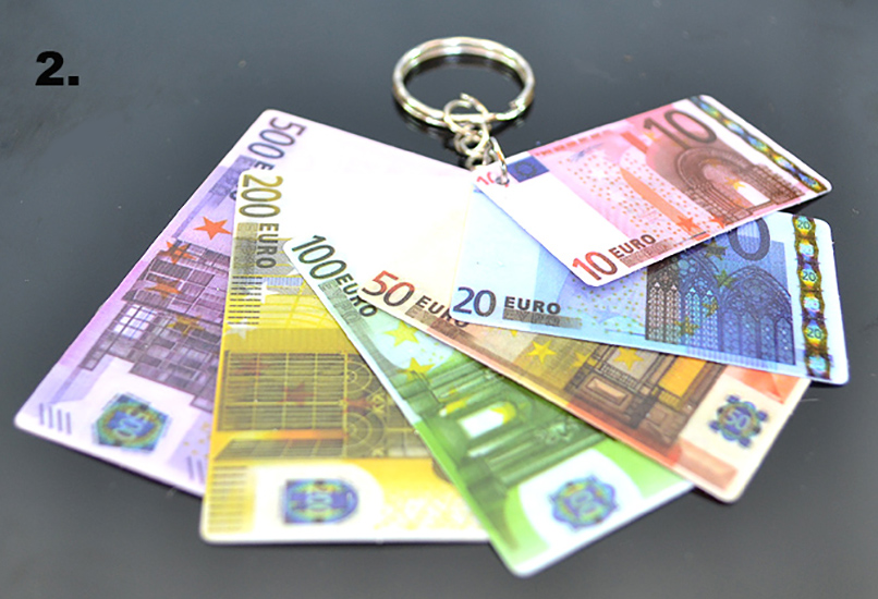 Prívesok na kľúče - kľúčenka s imitáciou eurobankoviek a dolároviek. Cena s DPH. Druh bankoviek si prosím vyberte z číselníka.