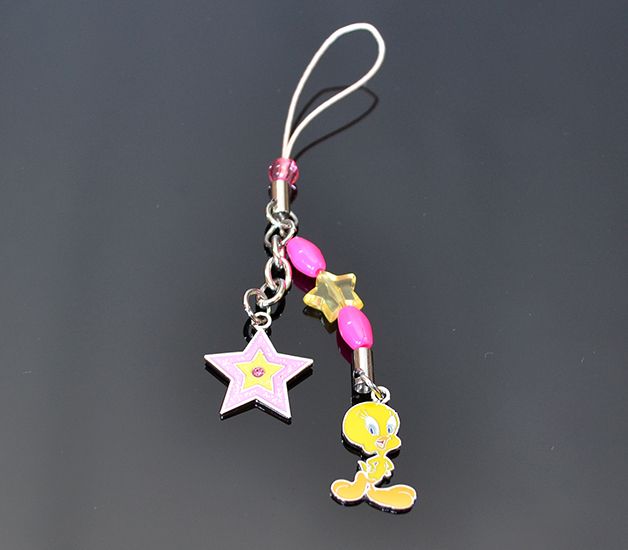 Prívesok s karabínku s rozprávkovou figúrkou Tweety. Na šnúrke je aj hviezdička a korálky. Prívesok je zabalený na blistri a v celofáne. Prívesok je vhodný ako kľúčenka, ako ozdoba na mobilný telefón, kabelku, detskú aktovku alebo batoh, atď.