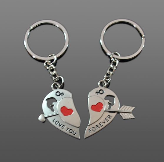 Prívesok pre zamilovaných - dve polovice srdiečka, ktoré do seba perfektne zapadajú. Obsahujú nápis LOVE YOU na jednom a FOREVER na druhom prívesku. Na zadnú časť Vám vieme vygravírovať text (mená, dátum, iniciály,..) podľa Vašej predstavy za príplatok. Skvelý darček na Valentína, či len tak z lásky :)