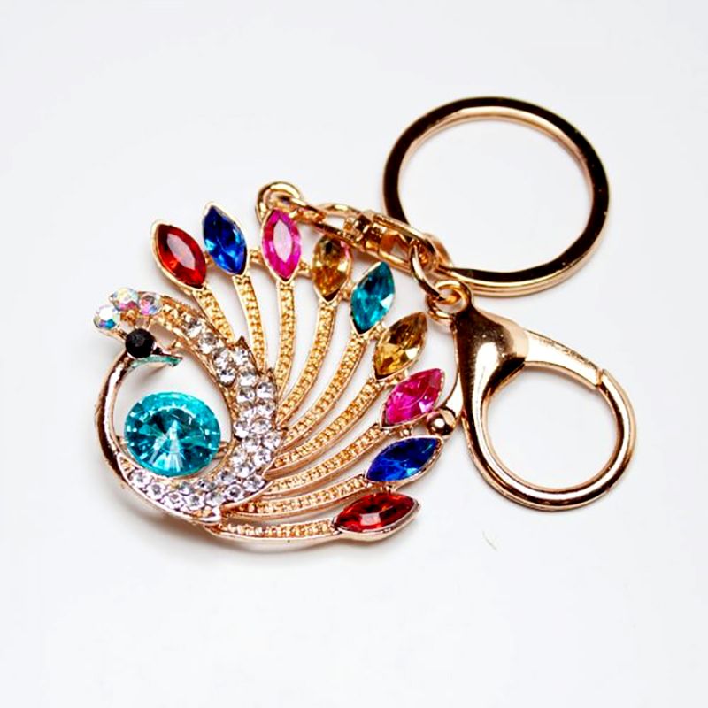 Ponúkame Vám skvelý nápad na darček pre ženy, ale aj pre mužov - prívesok zdobený trblietavými zirkónmi v tvare páva. Prívesok, kľúčenka je vyrobená z najkvalitnejších materiálov, má karabínku s karičkou, ktoré sú zlatej farby. Tento prívesok nie je vhodný len ako kľúčenka. ale môžete si s ním ozdobiť aj kabelku. Je vhodný pre ženy a mužov, ktorí sú fanúšikmi exkluzívnych a krásnych módnych doplnkov.