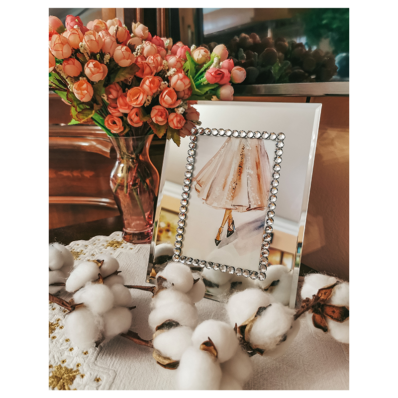 Rám v štýle glamour so zrkadlovým rámom zdobený drobnými kryštálmi.