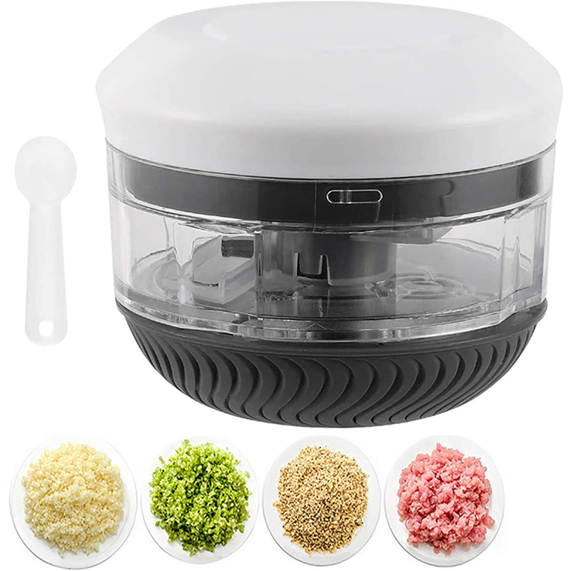 Rotačný sekáčik je dokonalým zariadením do vašej kuchyne. Vďaka nemu rýchlo pripravíte šaláty. Je ideálny na krájanie cibule, mrkvy, papriky, uhorky, syra, vajec aj na inú zeleninu alebo ovocie. Stačí do neho vložiť olúpané strúčiky cesnaku alebo inej zeleniny, párkrát ho zatočiť a je hotovo. Obojstranná čepeľ z nerezovej ocele je zosilnená a odolná voči korózii. Okrem toho je súčasťou balenia malá plastová lyžička, aby ste jedlo dostali von.