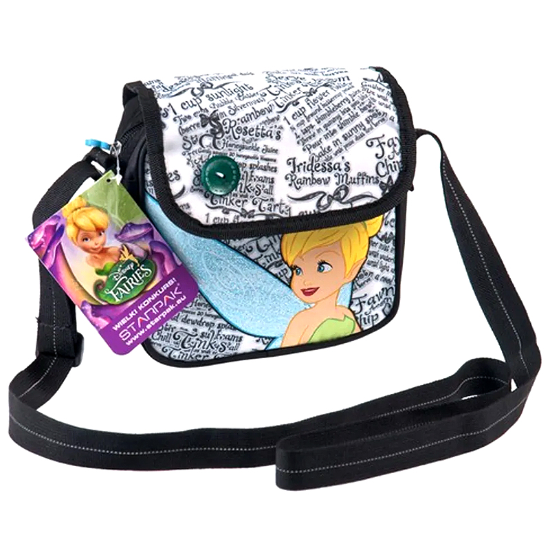 Taška cez rameno s krásne zdobenou chlopňou z kolekcie Starpak z licencie Fairies. Kabelka na pohodlnom nastaviteľnom popruhu je nevyhnutným prvkom stylingu každého dievčaťa a miestom na uloženie jej pokladov a drobností.