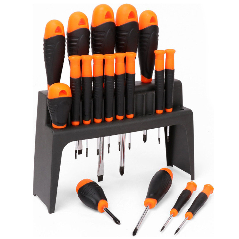 Sada skrutkovačov s ergonomickou rúčkou. Mix plochých a hviezdicových koncoviek vyrobených z vysokokvalitnej ocele.