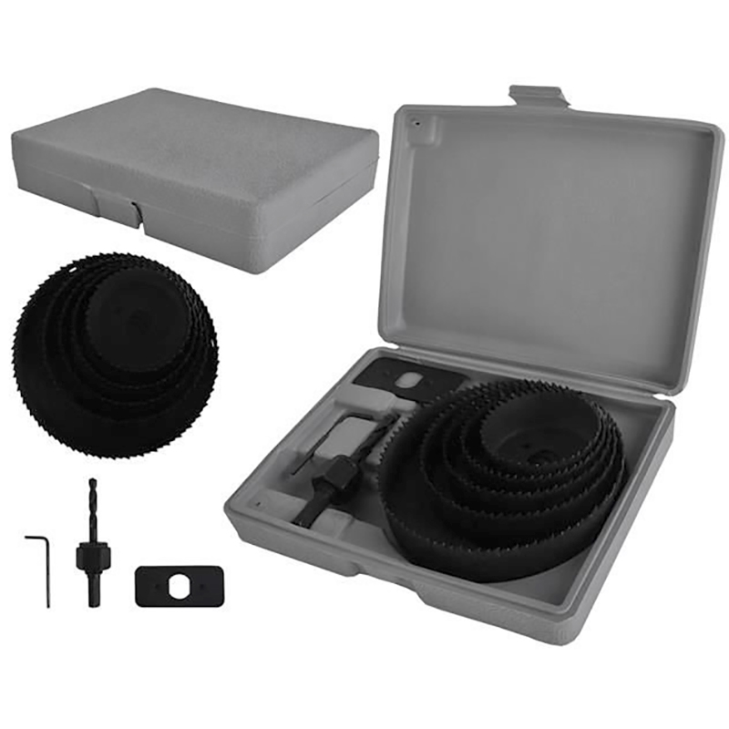 Technické údaje : počet vrtákov - 5; priemery v mm - 64; 76; 89; 102; 127; hĺbka - 25mm; hmotnosť sady - 715g; rozmer kufríka - 20 x 15,5 x 4cm;
