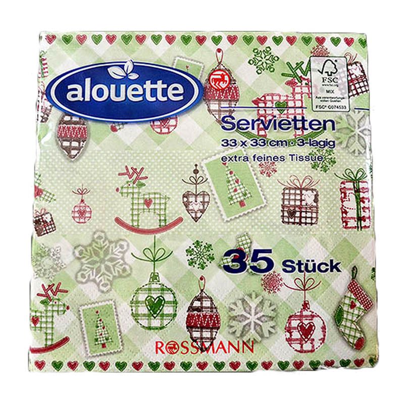 Servítky značky alouette s vianočným motívom o rozmere 33x33cm. 35 kusov v balení. Obrúsky sú trojvrstvové.Servítky sú vyrobené z ekologických materiálov. Cena s DPH