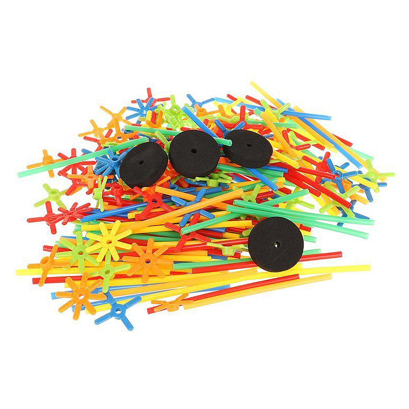 Sada obsahuje 120 rôzne zafarbených slamiek, 114 spojovačov a 4 penové kolieska. To umožňuje realizáciu takmer nespočetného množstva projektov. Zahrnuté kolesá vám umožnia diverzifikovať štruktúru, napríklad na vytvorenie vozidiel, vozíkov atď.