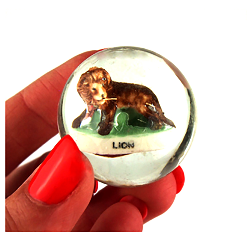 Sklenená gulička so zvieratkomo priemere 3,5 cm. Vhodné na hranie, edukáciu alebo dekoráciu.