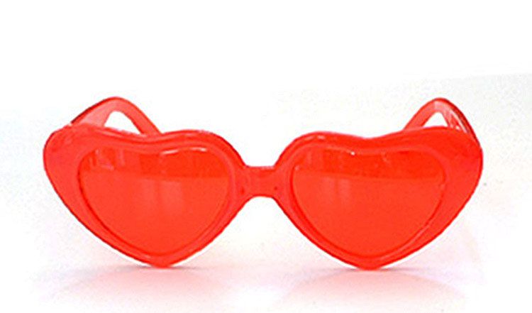Slnečné okuliare v tvare srdca určené pre deti s UV filtrom MAX v žiarivej červenej farbe. Rám okuliarov je vyrobený z pevného plastu.