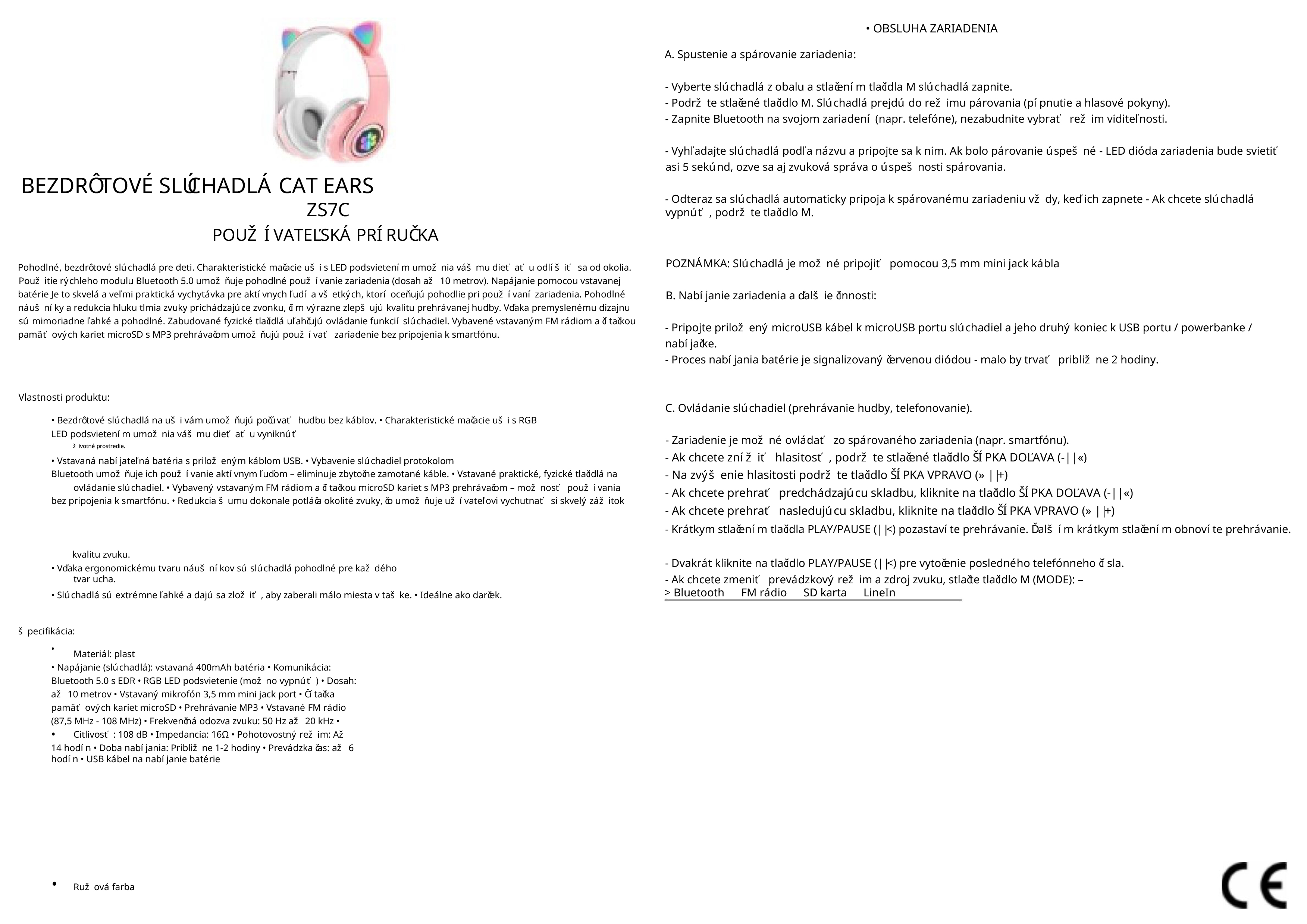 Pohodlné, bezdrôtové slúchadlá na uši pre mládež. Charakteristické mačacie uši s LED osvetlením umožnia Vášmu dieťaťu vyniknúť mimo prostredia.