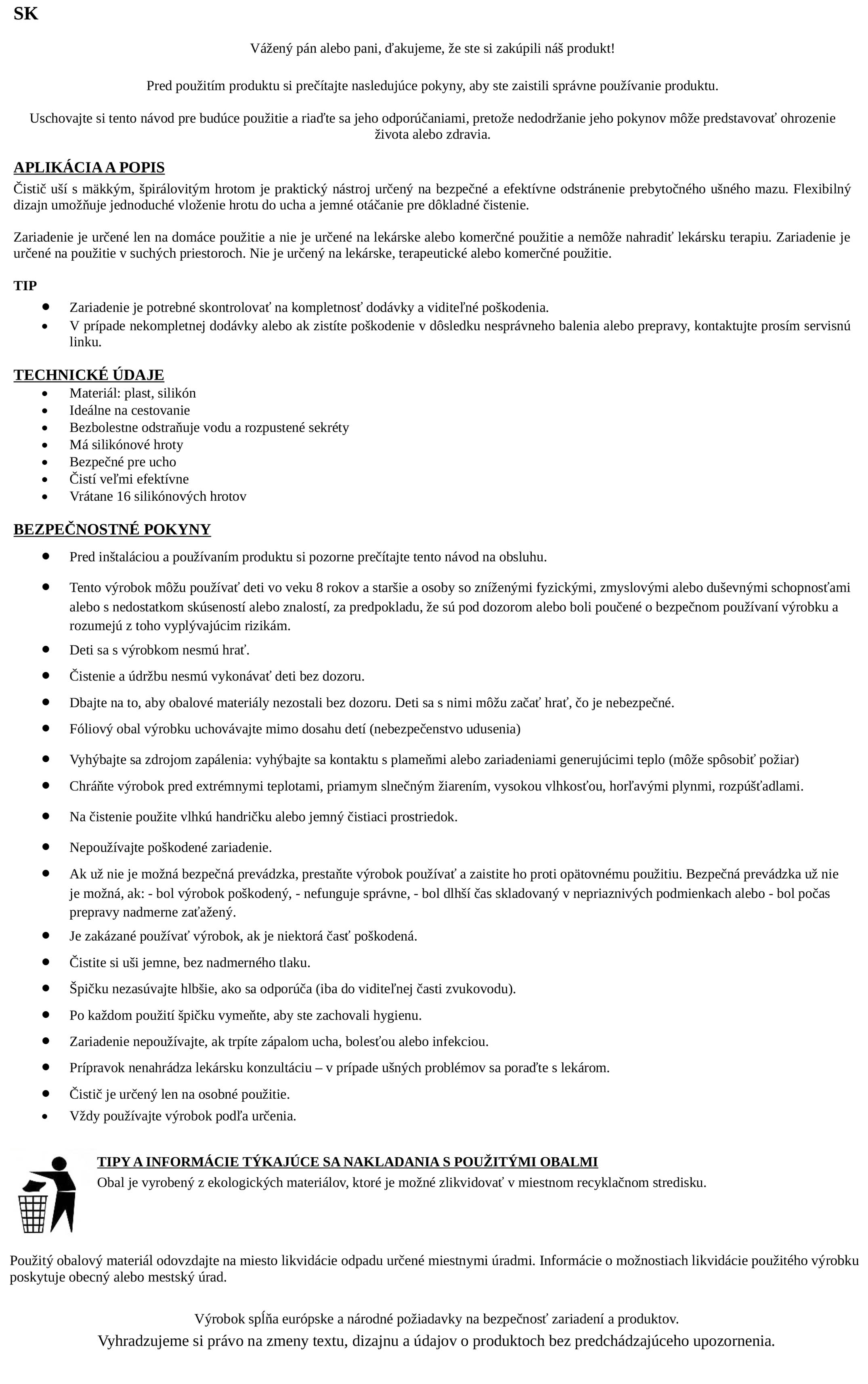 Tento praktický čistič na uši Smart Swab je modernou alternatívou ku klasickým vatovým tyčinkám. Vďaka mäkkému silikónovému hrotu efektívne a bezpečne odstráni nečistoty z ušného kanála bez toho, aby spôsobil podráždenie alebo poškodenie. Je ideálny pre deti aj dospelých a vhodný aj na cestovanie.