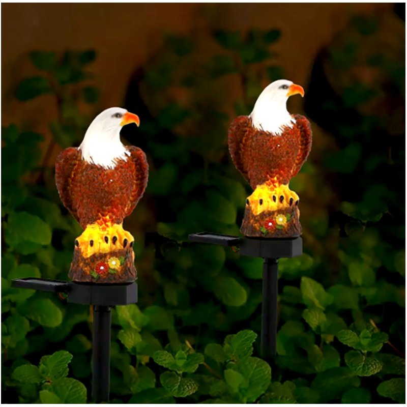 Nezvyčajná, solárna LED záhradná lampa v tvare orla.