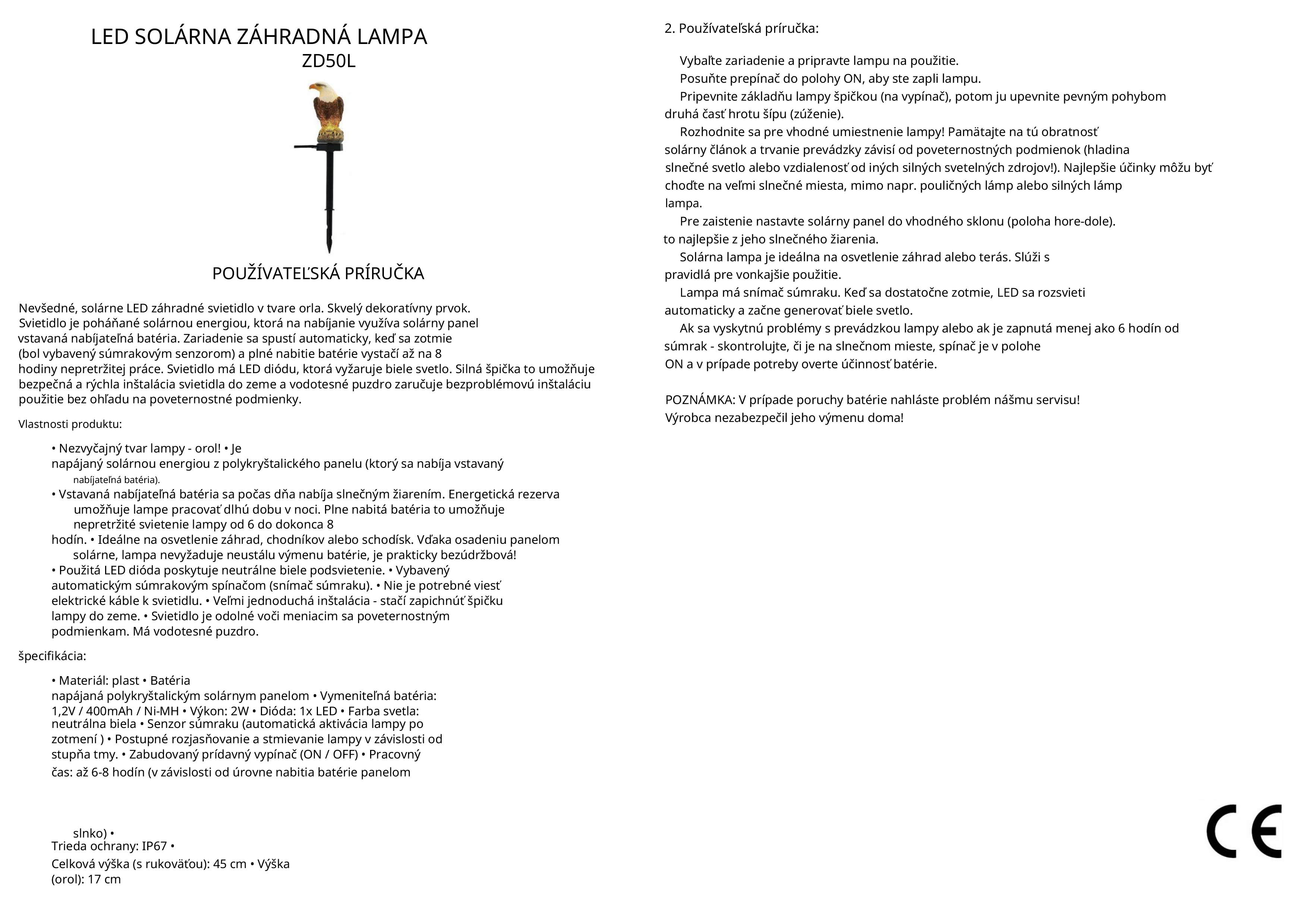 - Solárna záhradná lampa - Orol