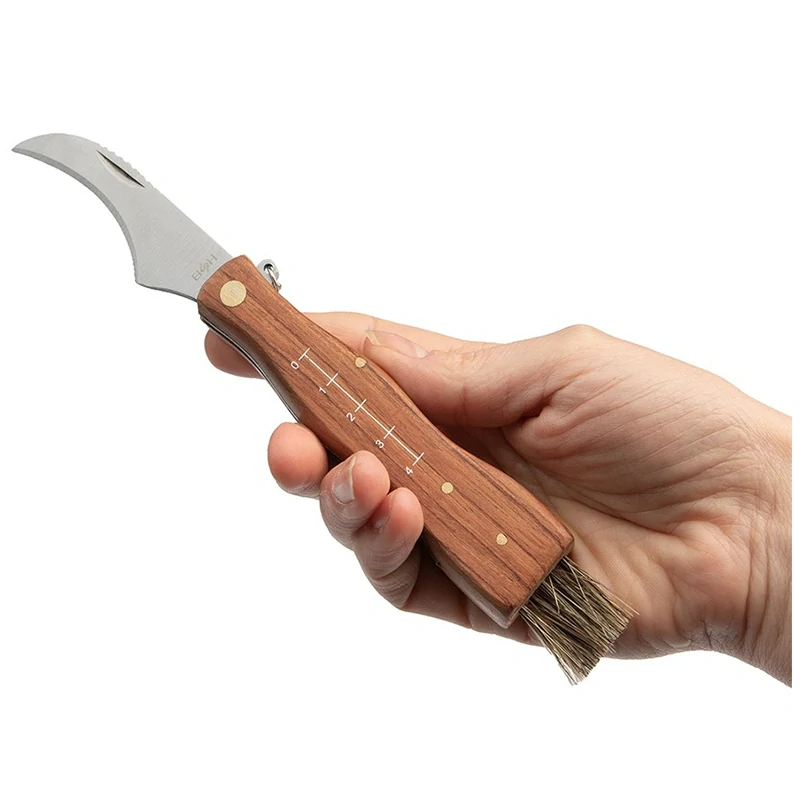 Na rukoväti je stupnica, ktorá umožňuje ľahko posúdiť veľkosť huby. Na zadnej strane je kefka, ktorá vám pomôže pri prvom čistení húb od pôdy a lesného odpadu. Pohodlným prvkom je karabínka na retiazke, vďaka ktorej môžete nôž pripevniť na oblečenie alebo vybavenie a v prípade potreby ho rýchlo odopnúť.