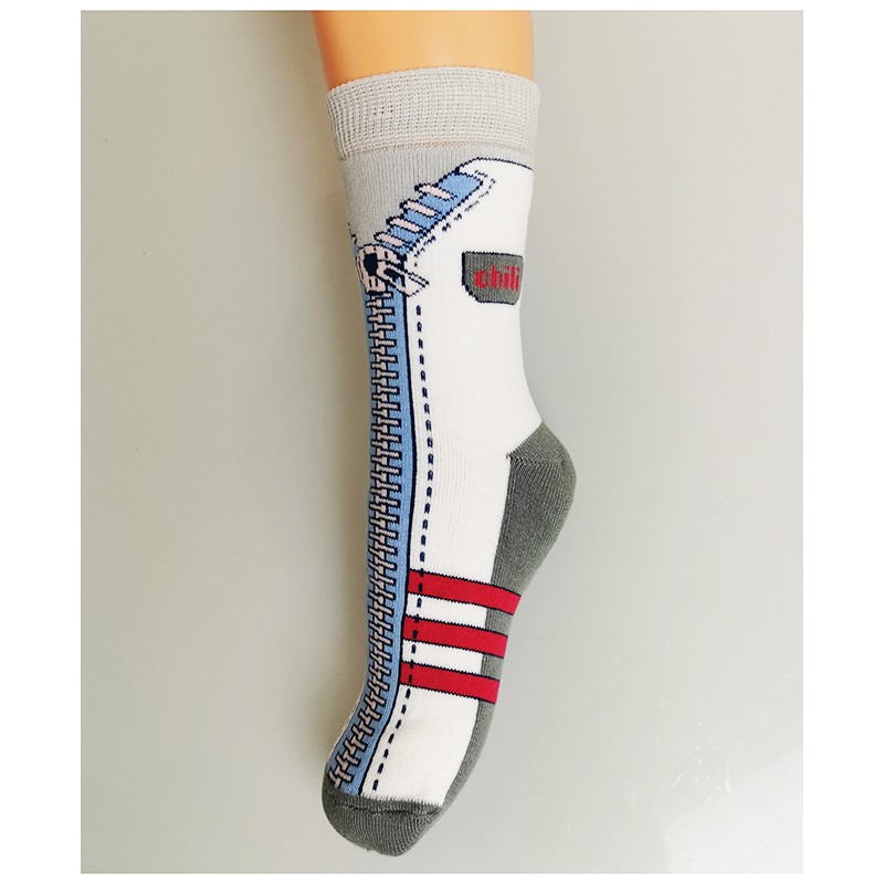 Detské bavlnené ponožky sú vyrobené z vysoko kvalitnej bavlnenej priadze.. Sú veľmi príjemné na dotyk a pohodlné. Majú ploché švy s nesťahujúcim a protisklzovým lemom. Pevne držia a zároveň sa nezarezávajú do pokožky.
