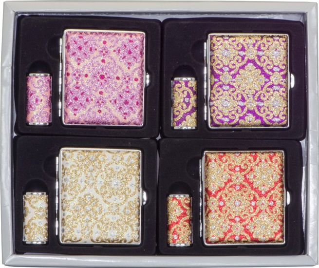 Exkluzívna tabatierka s barokovým vzorom v štyroch rôznych farbách ako elegantný doplnok. K tabatierke v cene dostávate aj kovový obal na zapaľovač, čo vytvára krásnu súpravu. Je vhodná na 18 cigariet dĺžky 85 mm. Farbu si prosím zaškrtnite v číselníku.