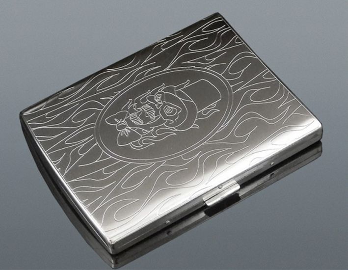 Luxusné Puzdro je vyrobené z vysokokvalitnej nerezovej ocele s vygravírovanou lebkou. Vhodná na dlhé 100mm aj na slimky.