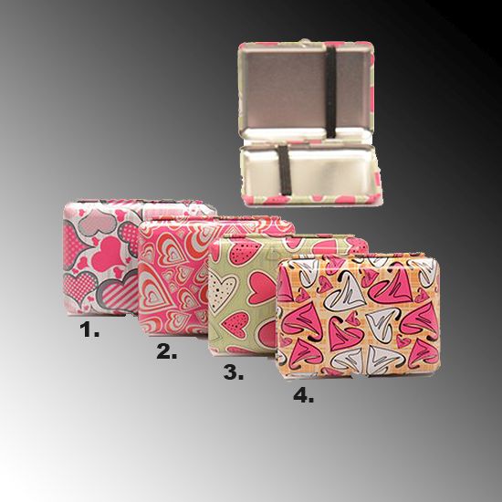 Máte už nejaký darček pre ženu. V ponuke pekná ženská kovová tabatierka so vzorom srdiečok v štyroch rôznych dekoroch. Do tabatierky sa zmestia cigarety dĺžky 85 mm.