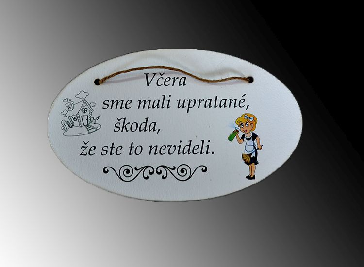 - Tabuľka drevená elipsa 18x11cm Upratovanie