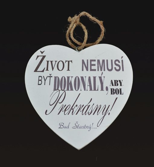 - Tabuľka drevená srdce 15cm Život nemusí byť dokonalý
