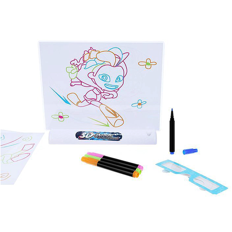 Sada obsahuje príkladné šablóny na kreslenie, 4 fixy, stojan s podsvietením, sklenenú dosku, handričku a okuliare. Celé vám to umožní prejsť do 3D sveta.