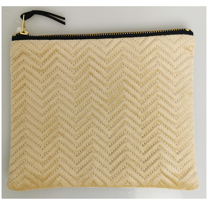 Elegantná dámska taška z veľmi príjemného materiálu. Je veľmi praktická a má dostatočný objem na to, aby sa Vám do nej zmestila celá Vaša osobná kozmetika, ktorú potrebujete na dovolenke, služobnej ceste alebo pri cestovaní. Môžete ju využiť aj na uskladnenie iných drobností, ako sú lieky, sponky, gumičky..Je vyrobená z kvalitnej tkaniny z prešívaným vzorom a je uzatvárateľná zipsom. Na dotyk je veľmi príjemná.