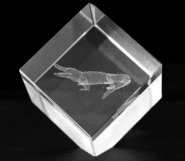 Sklenené ťažítko z vysokokvalitného lešteného optického skla v tvare kocky zachráni Vaše papiere pred prievanom alebo stratou, ale navyše aj dokonale skrášli interiér kancelárie alebo domácnosti. Podstavu tvorí jedna zrezaná hrana kocky. Vo vnútri je pomocou najnovšej technológie vygravírovaný 3D krokodíl. Ťažítko sa predáva v modrej krabičke, preto sa hodí aj ako darček vhodný pre blízku osobu.