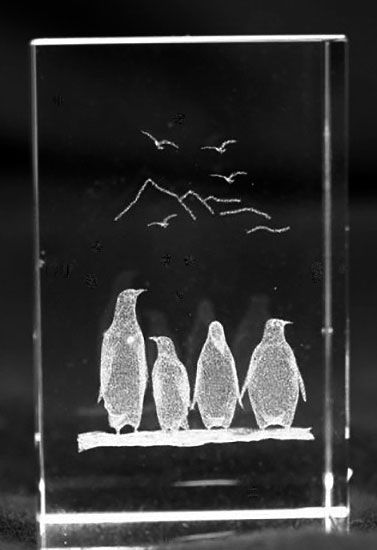 Sklenené ťažítko z vysokokvalitného lešteného optického skla v tvare kvádra zachráni Vaše papiere pred prievanom alebo stratou, ale navyše aj dokonale skrášli interiér kancelárie alebo domácnosti. Podstavu kvádra tvorí jeho spodná strana. Vo vnútri sú pomocou najnovšej technológie vygravírovaná v 3D obraze tučniaky. Ťažítko sa predáva v modrej krabičke, preto sa hodí aj ako darček vhodný pre blízku osobu.