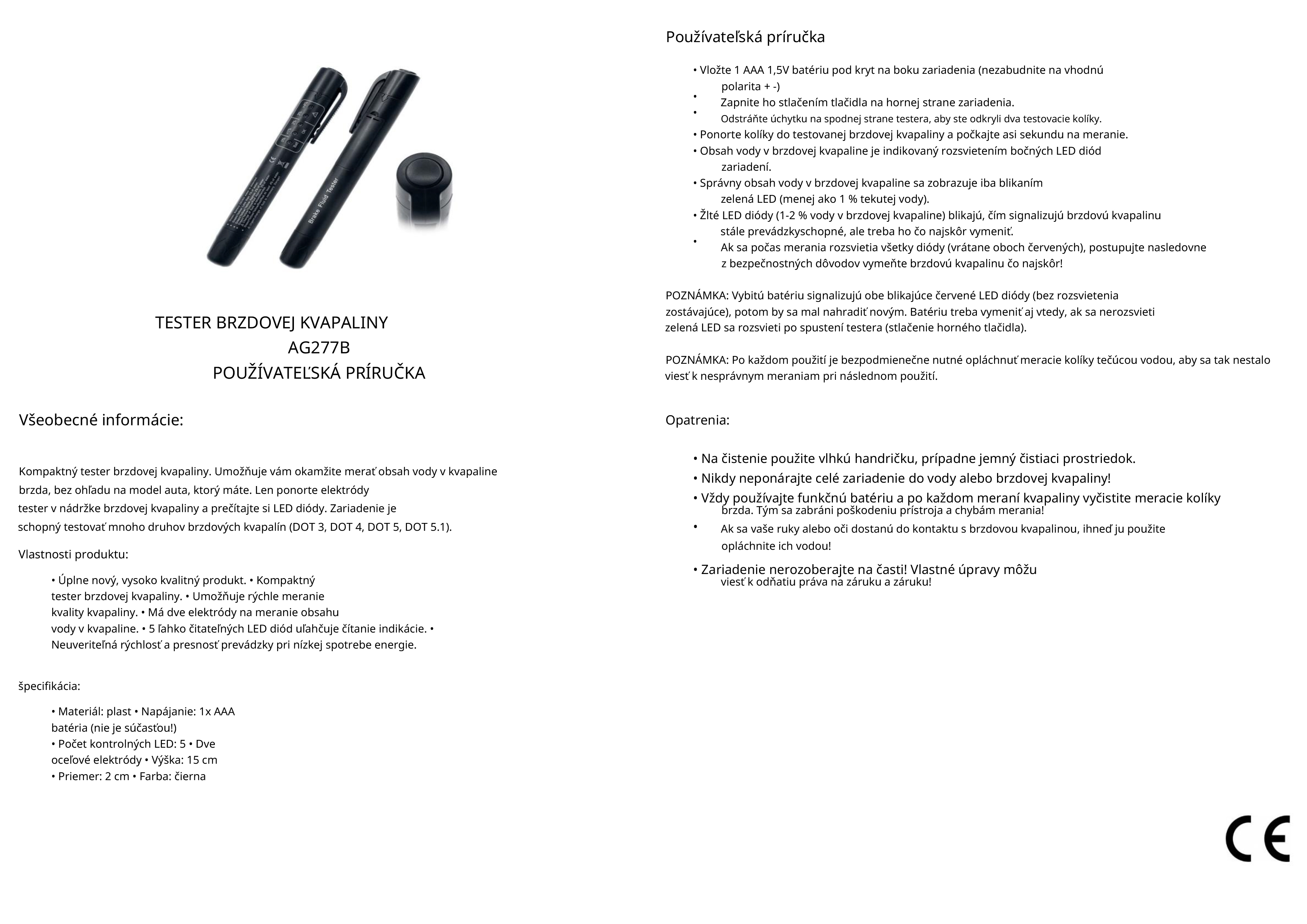 - Tester brzdovej kvapaliny