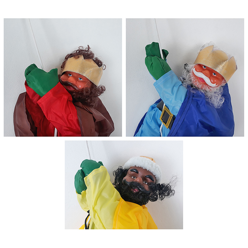 Dekoračné figúrky troch kráľov v troch farbách a dizajnoch. Figúrky si môžete pomocou priloženého lanka zavesiť na okno, fasádu domu alebo hocikde v interiéri alebo exteriéri. Každá farba oblečenia figúry má aj inú hlavu a tvár. Figúry sú vyrobené z látky v kombinácii s plastom. Dĺžka postavičky je 60 cm. Farbu si prosím zaškrtnite v číselníku.
